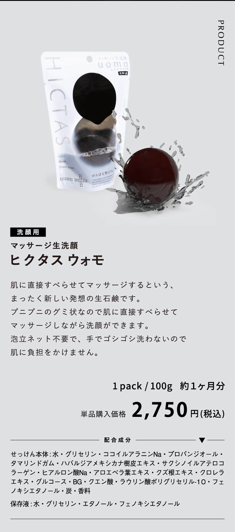 ヒクタス ウォモは、男性のダメージを受けやすい肌に合わせて作られたメンズ洗顔石鹸です。
